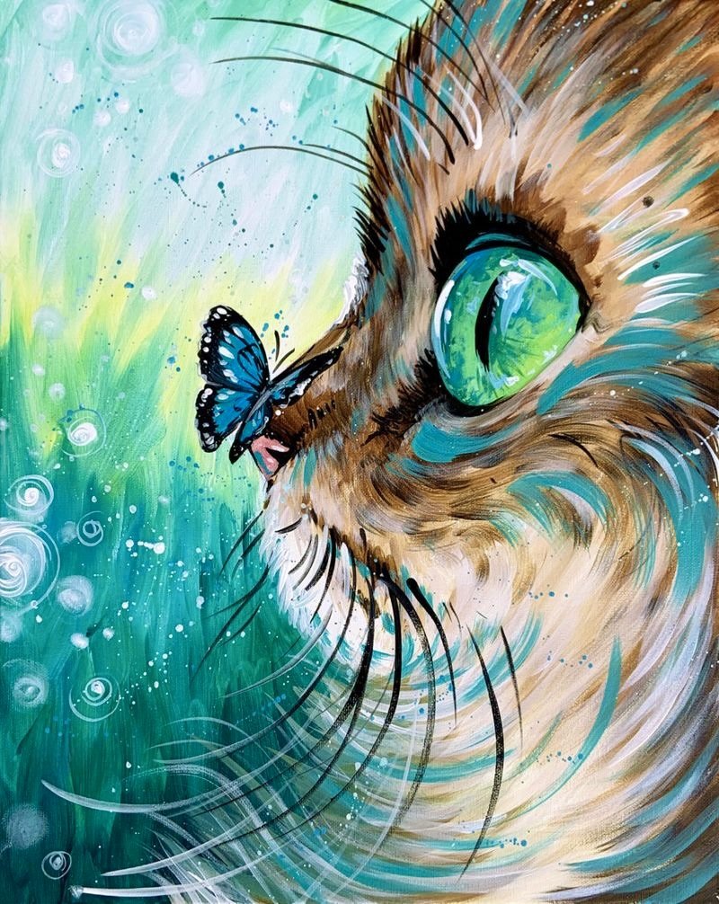 Cat and butterfly outline will be added to each canvas prior to the event taking place.